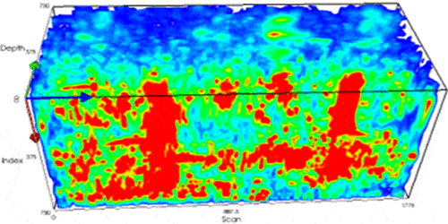 ミラによる3D解析画像(コンクリート内部の可視化)超音波音速計 <パルサー>